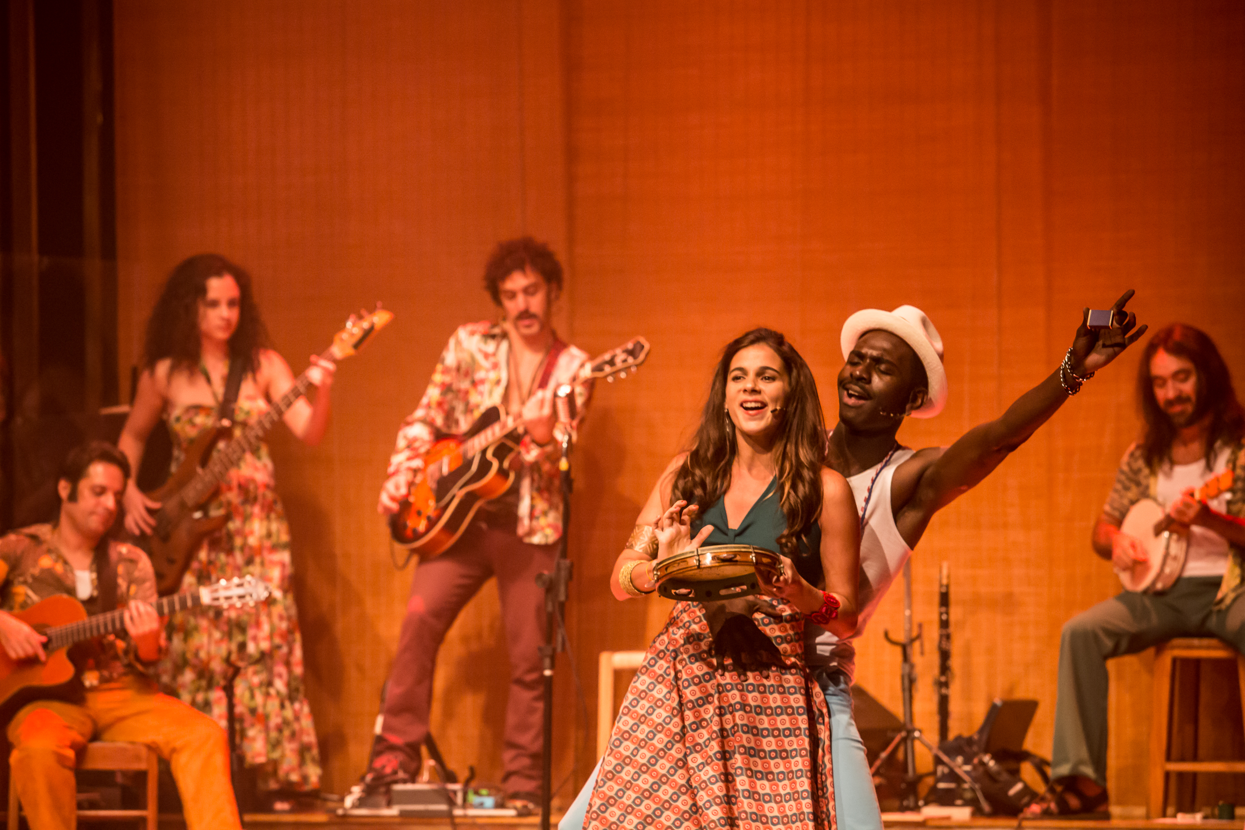 Entre meados dos anos 60 e o início da década seguinte, um casarão do século XVIII, sede de uma fazenda convertida em pensão, tornou-se fervilhante ponto de confluência de grandes nomes das artes brasileiras — alguns já com esse status, outros no caminho de conquistá-lo. Localizado no terreno onde hoje fica o Shopping Rio Sul, o Solar da Fossa, como ficou conhecido, recebeu de Caetano Veloso a Aderbal Freire-Filho, de Paulo Leminski a Zé Keti, de Betty Faria a Paulo Coelho. No consistente trabalho do grupo Complexo Duplo, o lendário endereço tem sua história contada de maneira evocativa, não enciclopédica, através de um painel musical visualmente exuberante. Escrito por Daniela Pereira de Carvalho, o texto traz, entre o prólogo e o epílogo fixos, três blocos cuja ordem de apresentação é decidida por votação da plateia ao início da sessão. Sem prejuízo de entendimento, qualquer que seja a escolha, a trama parte de um diário fictício, com diversas páginas faltantes. Sua autora é Clarice (Tainá Nogueira), jovem hóspede do Solar cuja ingenuidade será deixada para trás graças ao intenso convívio com as ideias dos demais moradores. A dramaturgia fragmentada, se compromete um tanto o desenvolvimento dos personagens (criações baseadas em figuras reais, sem se referir a nenhuma delas especificamente), por outro lado compõe um atraente mosaico justificado pelo espírito subversivo e caótico do lugar. Mais do que meritórias em comparação a tantos musicais de repertório já existente, as canções de Luciano Moreira e Felipe Vidal (com inserções de clássicos daquela época e sob direção musical de Marcelo Alonso Neves) revelam beleza própria, à parte sua relação funcional com a trama. A direção engenhosa de Vidal dribla certa redundância de situações e impõe o ritmo necessário a um espetáculo longo. Formado ainda por Julia Bernat, Guilherme Miranda, Leonardo Corajo, Adassa Martins, Felipe Antello, Clarisse Zarvos, Guilherme Stutz, Izak Dahora, Jefferson Almeida, Julie Wein, Laura Becker e Luciano Moreira, o elenco se desdobra em uma penca de instrumentos, mostrando entrega, vigor e coesão condizentes com a essência do Solar.