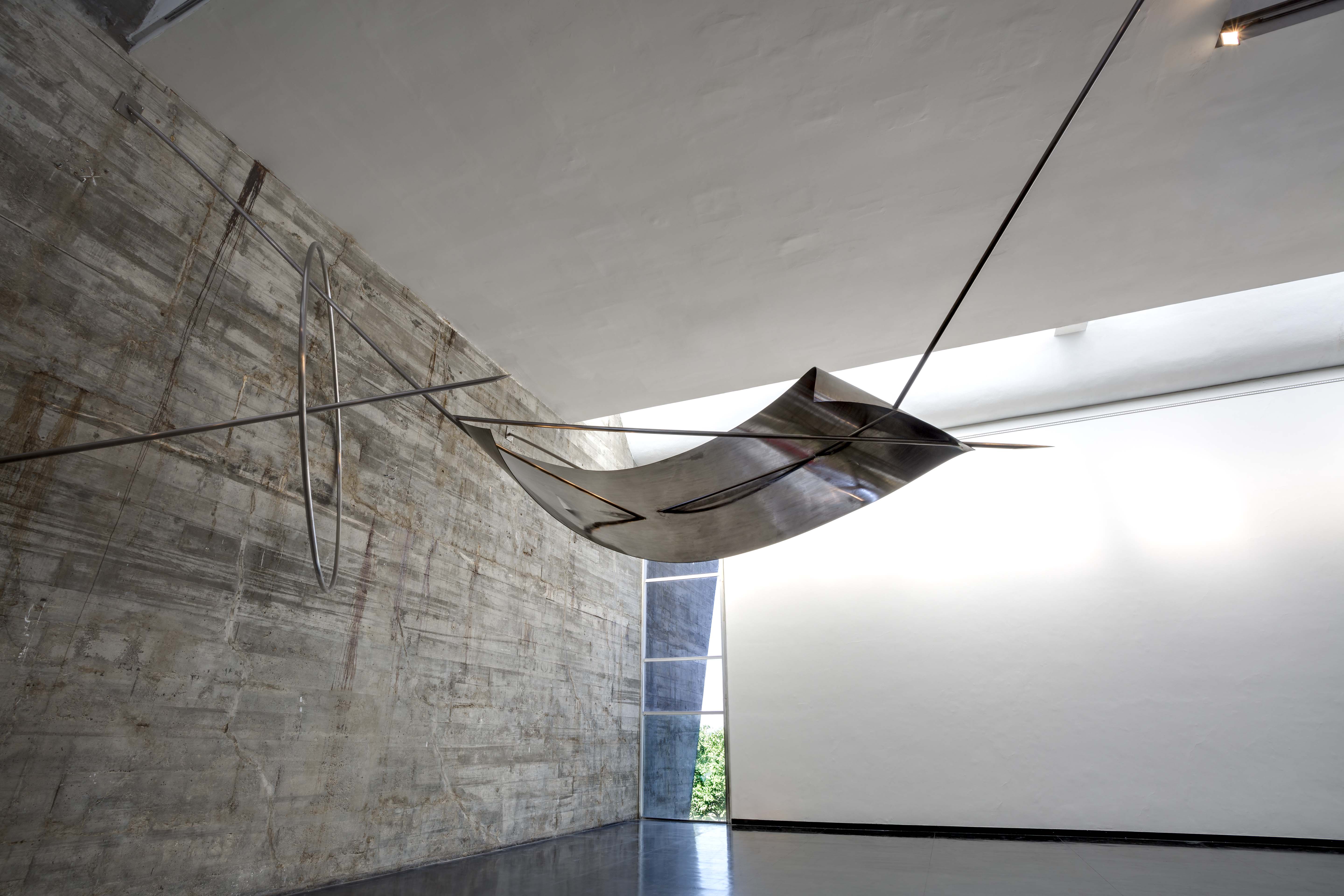 Na individual O Peso de Cada Um, a artista exibe uma instalação, feita especialmente para o local, composta por três esculturas de grandes dimensões, duas suspensas e uma no chão, em aço inox espelhado e fosco.