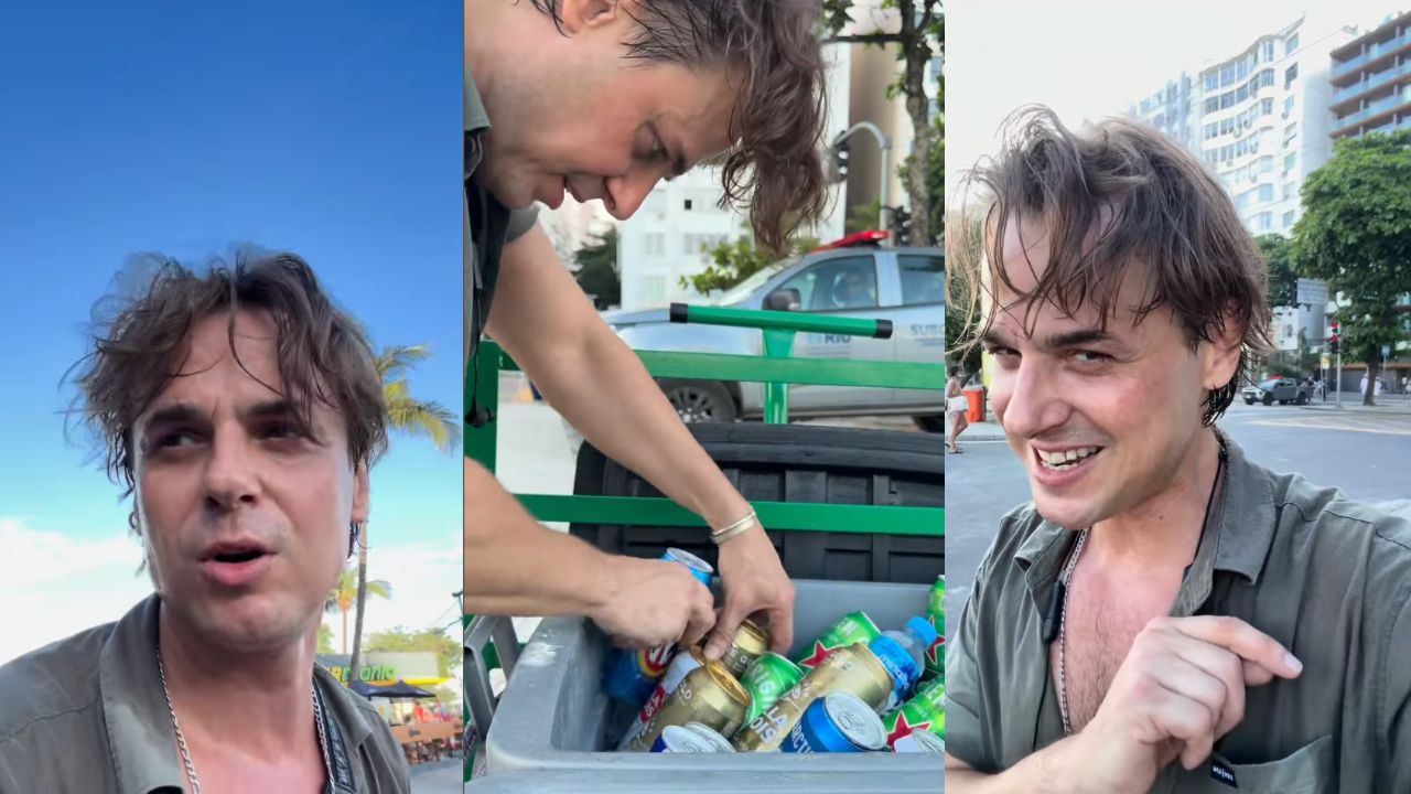 Nos vídeos compartilhados, o ator mostra o corre dos trabalhadores que vendem bebidas em barracas, com ou sem alvará. A primeira dificuldade, além do peso do carrinho, foi driblar o acesso à praia, pois não era permitido entrar com garrafas de vidro a partir das 18h. “Mais um dia de maluco e extraordinário”, escreveu Erthal.
