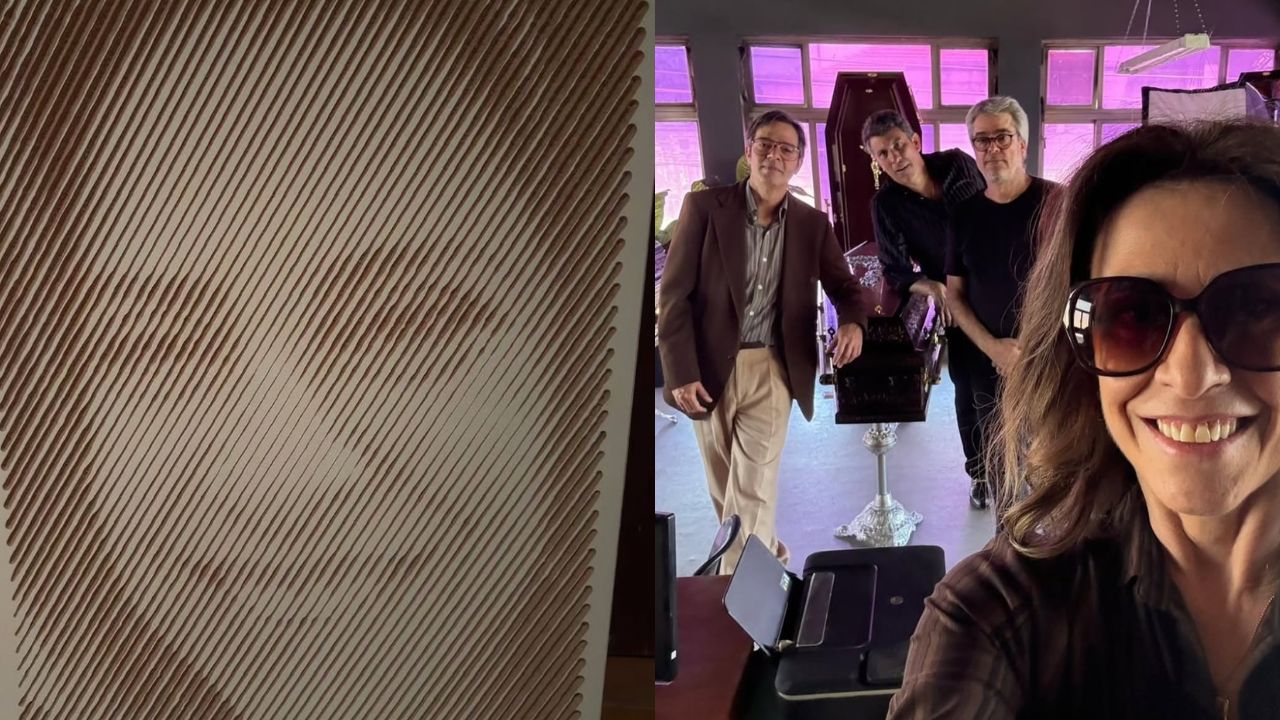 Um retrato entalhado em madeira foi entregue no camarim das filmagens de O Corretor, novo longa protagonizado pela atriz