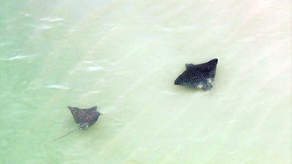 Arraias gigantes são vistas nadando na Praia da Reserva nesta quarta (17)