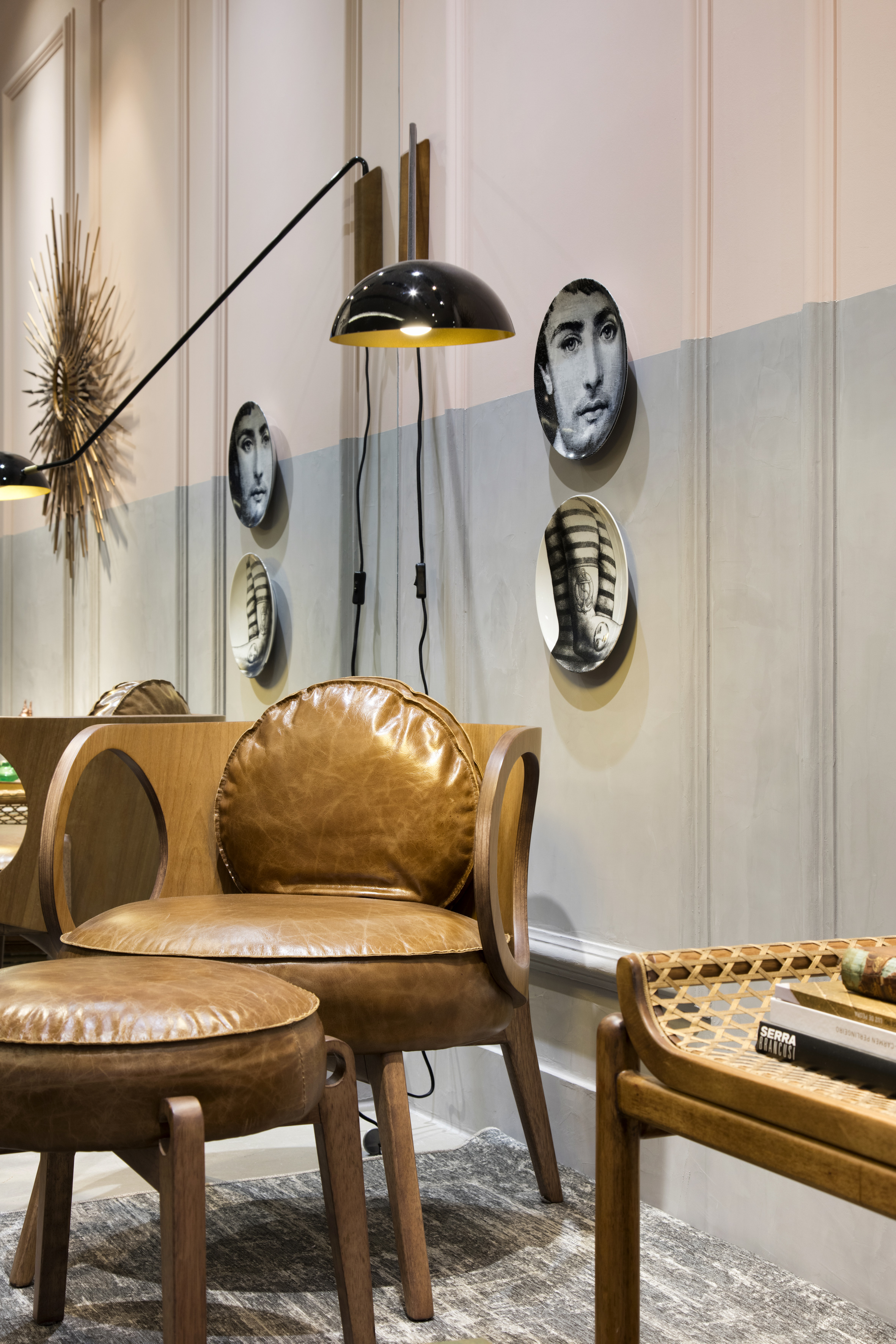 Surgidas originalmente na França entre os séculos XVII e XVIII, as boiseries, revestimentos de parede tradicionais na forma de molduras em alto-relevo, vêm ganhando destaque nos projetos mais contemporâneos. Em contraste com móveis e objetos de design moderno, elas dão um charme vintage aos ambientes, o que resulta em uma estética eclética e sofisticada ao mesmo tempo. No projeto assinado pelo arquiteto Fabiano Ravaglia (foto acima) foram usadas duas tonalidades do acabamento para criar uma interferência gráfica na parte inferior da parede. Jacira Pinheiro optou pela aplicação sobre parede bicolor, cinza e rosa millennial (foto à dir.), combinada com o mobiliário de madeira, couro e palha.