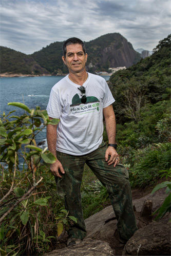O bancário Domingos Sávio Teixeira atua há onze anos na recuperação da cobertura vegetal do costão do Pão de Açúcar