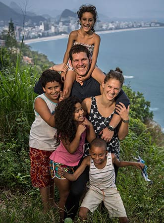 Pedro Henrique (na foto, com sua esposa e parceira de projetos, Caroline Shannon, e crianças da favela) está diretamente envolvido na melhoria das condições de vida do morro. Nascido na Paraíba, ele ajudou a implantar o Parque Sitiê em uma área que funcionava como depósito de entulho. Trata-se da primeira agrofloresta do Rio, em que trechos de mata nativa se alternam com terrenos cultivados, numa conjunção de parque ecológico com parque educativo. Com a ajuda dos moradores e de alguns colegas americanos, a área foi limpa e reurbanizada. “Devolvemos à comunidade um espaço público degradado com independência de recursos. Hoje, o parque está se transformando em ONG e garantindo renda aos participantes. Mas eu não recebo um centavo com isso”, explica. Paralelamente, ele é responsável pelo movimento CidadeUnida, de fomento de políticas públicas para as favelas, e também pelo projeto +D, um escritório de arquitetura pública com foco em praças e prédios de uso comunitário. “Nosso objetivo é fazer intervenções locais, mas com impacto. Queremos levar a outras favelas tudo o que foi bem-sucedido aqui.”