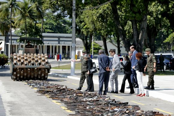 O Exército destruiu nesta quarta-feira (20) cerca de 2 mil armas que estavam nos fóruns de Justiça do Rio de Janeiro. Em 2017, 43.255 armas de diversos tipos e calibres e 358.475 munições apreendidas por agentes de segurança pública ou entregues pelos donos na campanha do desarmamento foram eliminadas no estado do Rio. O armamento destruído foi entregue pelo Tribunal de Justiça do Rio de Janeiro e atende ao previsto no acordo de cooperação técnica firmado em 21 de novembro entre o Exército e o Conselho Nacional de Justiça (CNJ).
