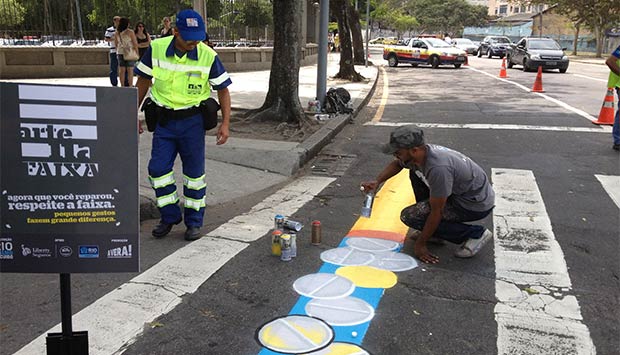 Faixas de pedestre nas ruas do Rio ganham arte urbana