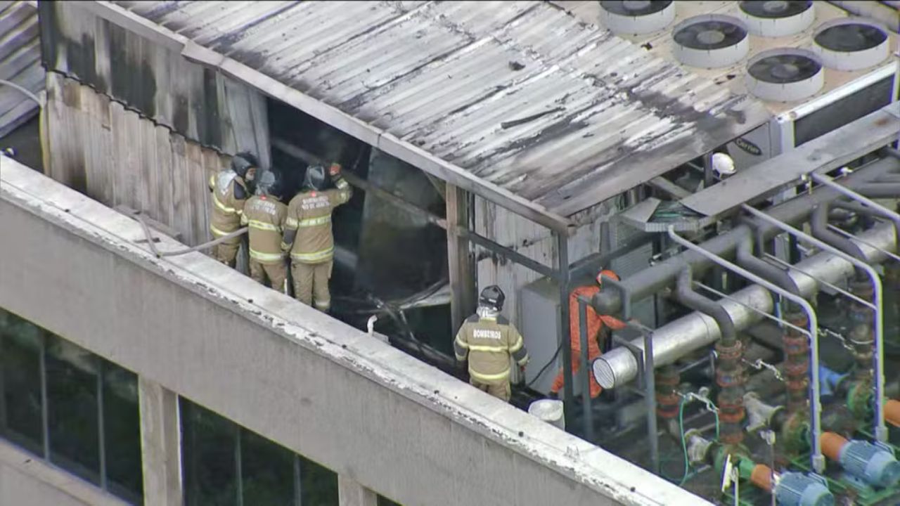 Já segundo a corporação, o fogo começou na casa de máquinas do ar-condicionado central e foi controlado por volta das 6h30.