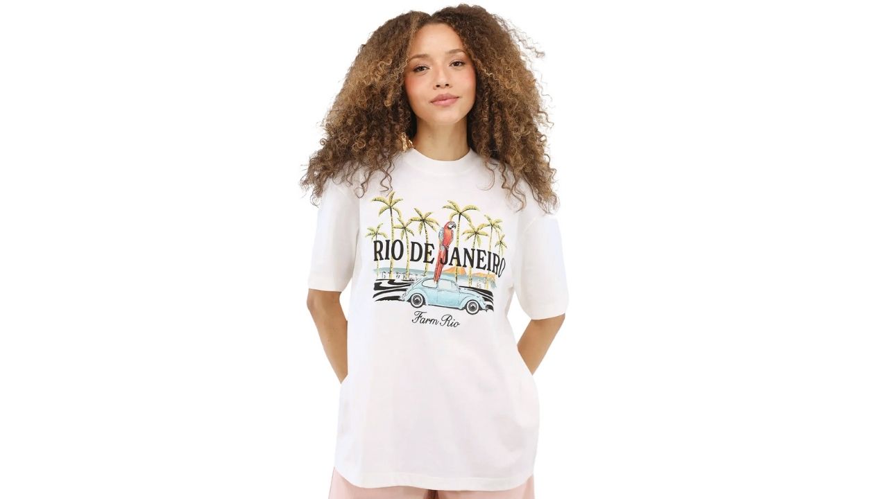 Camiseta feminina 100% algodão. Farm, dafiti.com.br. (R$ 154,99)  (dafiti.com.br./Divulgação)