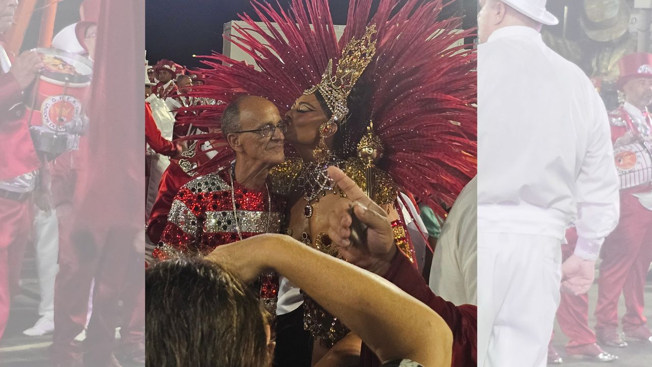 Na concentração, também ganhou um beijo de Mestre Ciça, mestre de bateria da escola e homenageado do enredo Pra Cima Ciça!, escrito pelo carnavalesco Tarcísio Zanon.