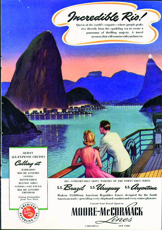Mais de um século de navegação marítima foi reconstituído no livro Transatlânticos no Brasil (Editora Capivara). O embarque em 400 imagens, entre fotografias, mapas e materiais publicitários, começa em 1851, ano em que a companhia inglesa Mala Real inaugurou a primeira linha regular entre a Europa e o Brasil, e termina na década de 60, quando cruzar o oceano caiu em desuso, dando lugar à aviação comercial. Entre as curiosidades estão um cartaz e uma brochura da empresa alemã Hamburg Süd, da década de 30, que vendiam o Rio como destino turístico. A cidade, aliás, era chamada de “incrível” em anúncio de 1941 da americana Moore & MacCormack Company.