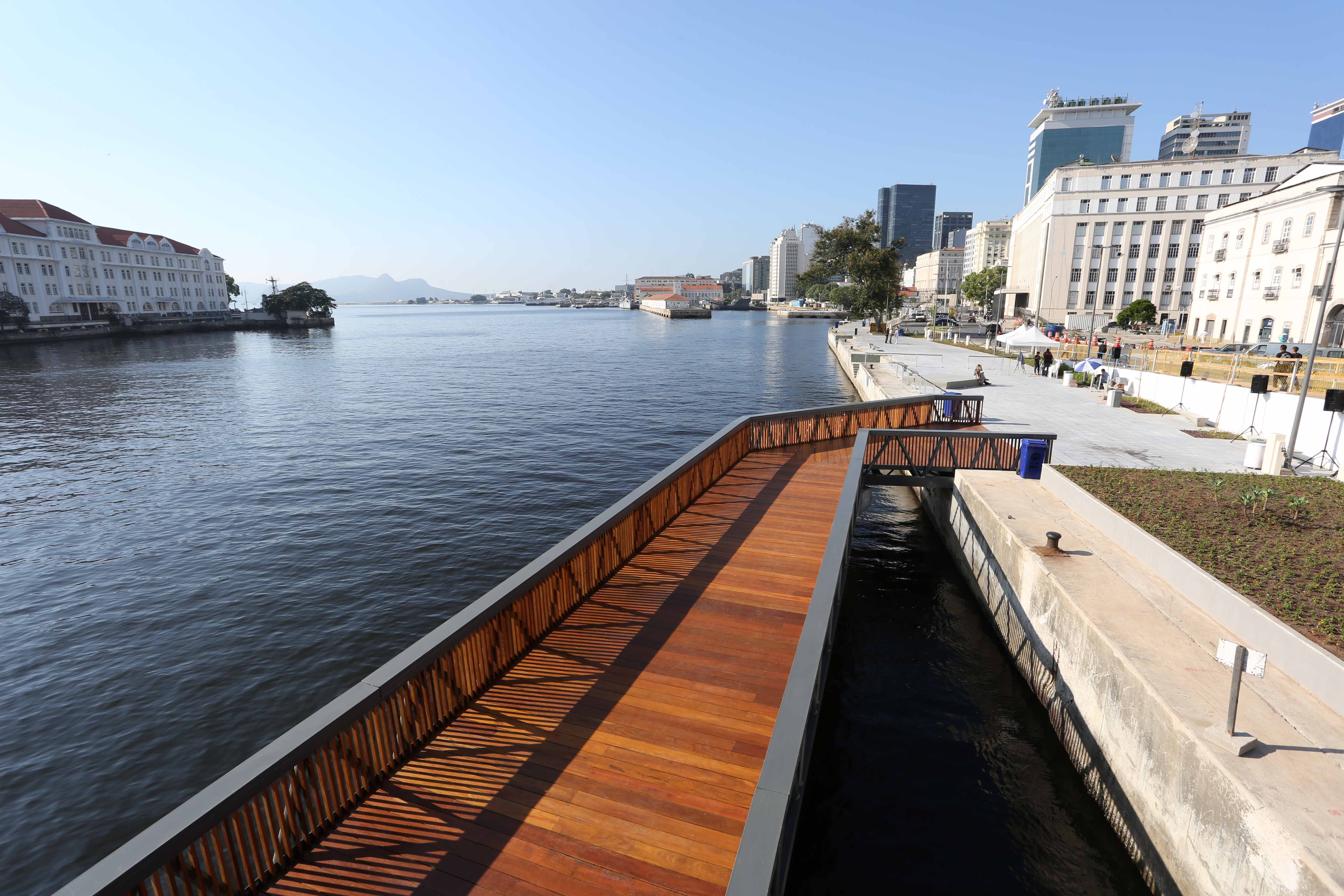 A orla tem 3,5 quilômetros e foi criada pela prefeitura com a derrubada do elevado da Perimetral. A paisagem até então só era apreciada pelos servidores da Marinha, que está instalada ali há mais de 200 anos.
