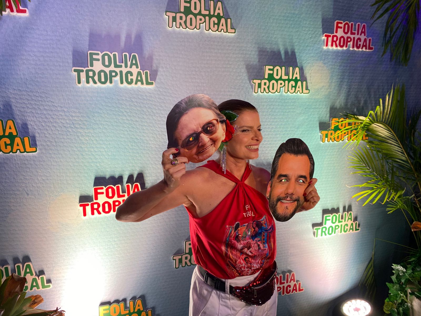 Na noite deste domingo (15), Wagner Moura e Tânia Maria foram vistos pela Sapucaí. Explica-se: o camarote Folia Tropical distribuiu máscaras dos atores para os convidados, entrando no clima da torcida pelo Oscar.