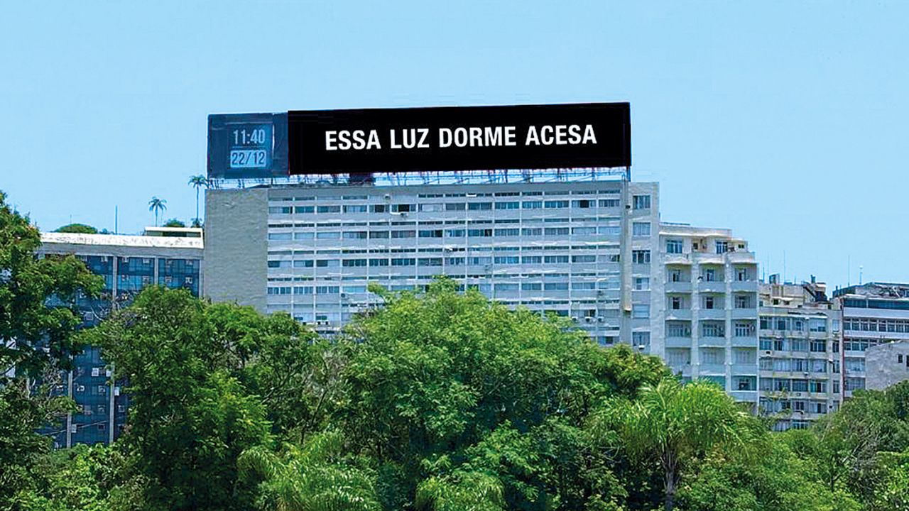 Quem passa pelo Aterro, na altura da Praça Paris, pode avistar um painel com uma frase em letras grandes: “Essa luz dorme acesa”.
