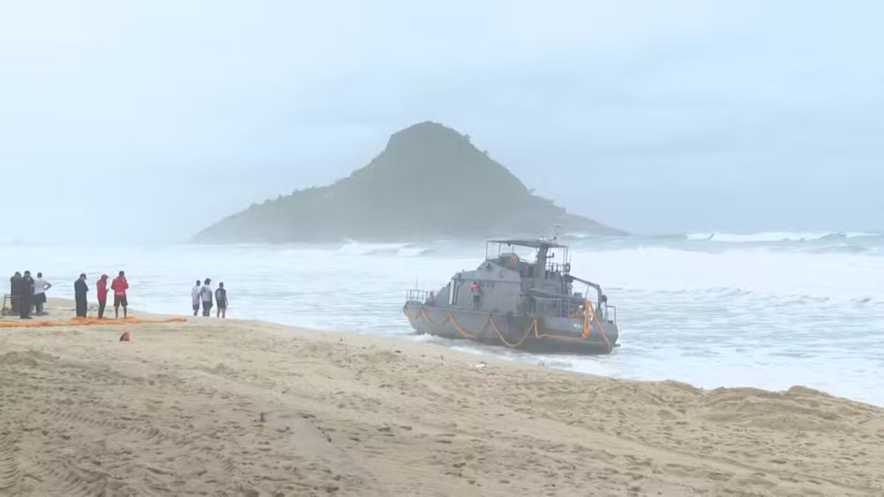 Navio na Praia da Macumba: outro barco fica preso na areia ao prestar ajuda