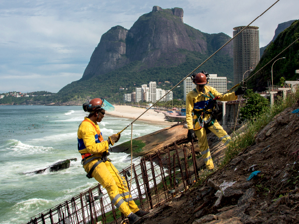 + Construção de elevado tem operários com treinamento de alpinismo