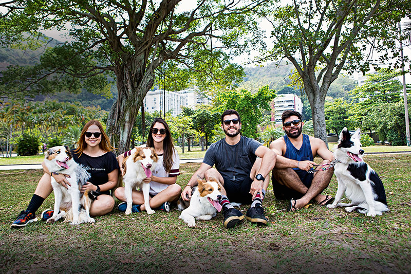 Conhecido como o cão mais inteligente do mundo, o border collie, agora, também é o novo queridinho dos cariocas, desbancando os populares buldogue-francês e golden retriever. “Nos últimos três anos a demanda por border collies triplicou aqui no Rio”, confirma o veterinário Fernando Andrade, responsável pelo Canil FMA, em Piraí, no interior do estado. Ele chega a receber por ano cinquenta pedidos de pessoas à procura de filhotes. Aos interessados, é importante saber que o animal dessa raça é muito esperto, sim, mas também exige atenção especial. “Por ser um cão pastor, usado originalmente como força de trabalho, ele precisa de atividade física constante, ou seja, não basta levá-lo à rua apenas uma vez por dia”, ressalta Andrade. Justamente por causa desse lado ativo da raça, o administrador Francesco Carnivale (na foto, de blusa cinza) foi até um canil no interior de São Paulo em busca de Valentina, de 3 anos, que se tornou mãe de Gigi, Thor e Nutella (a partir da esq.). “Eles são muito dóceis e companheiros. A Valentina já subiu a Pedra Bonita e o Morro Dois Irmãos comigo, além de ter feito várias trilhas em Ilha Grande”, elogia.