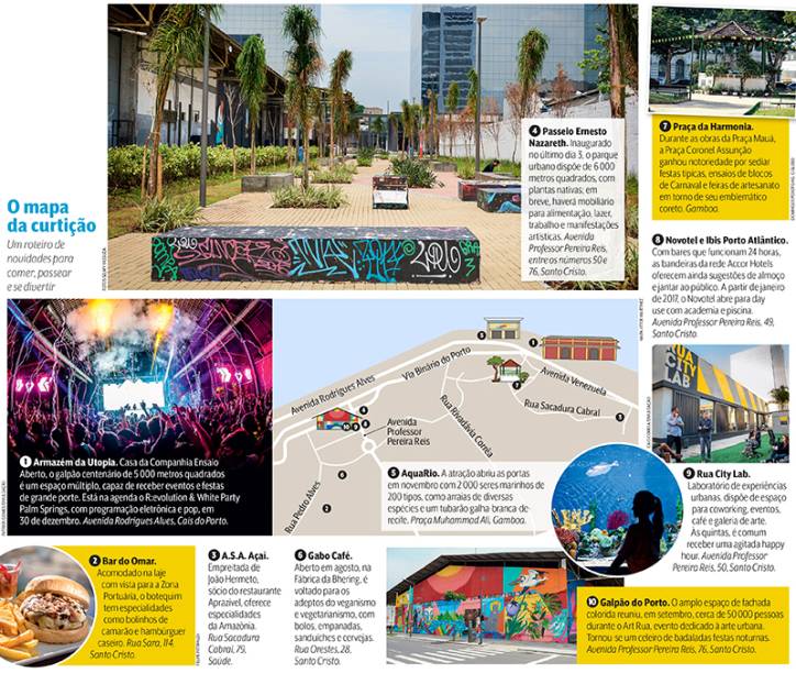 Sexta-feira, 16 de dezembro. Por volta das 10 da noite, no interior do Galpão do Porto, instalado no Santo Cristo — uma região vista com desconfiança por cariocas interessados em diversão e agito até pouco tempo atrás — mais de 1 000 pessoas se reuniram para encarar uma espécie de “rave” do arrasta-pé. Foram doze horas dançando ao som de sucessos de trios de forró e DJs. O local, assim como os recém-inaugurados AquaRio e o parque Passeio Ernesto Nazareth, reforça o leque de atrações que começam a surgir nos arredores da Zona Portuária. “Queremos estender o movimento de ocupação para além do aquário, com atividades ligadas a arte, criatividade, inovação e diversão nesse bairro”, afirma Daniel Kraichete, diretor do Distrito Criativo do Porto e curador de design do Rua City Lab, laboratório de experiências urbanas inaugurado em agosto deste ano com o objetivo de delinear propostas para a região.