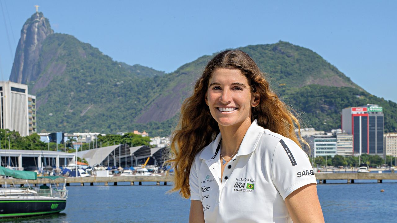 Velejadora comanda equipe brasileira na liga mundial de vela de alta performance nas águas da Baía de Guanabara, com barcos que voam a 100 km/h