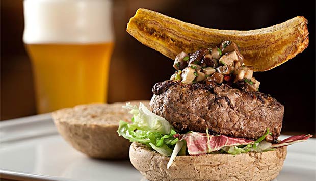 Uma das novas especialidades na carta de hambúrgueres da casa é o Tuscan Shiitake Burguer (R$ 37,90), hambúrguer de 200g coberto por cogumelos shitake, tiras de cebola, bacon, queijo suíço derretido e maionese de tomate seco.