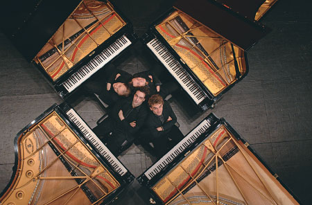 Gershwin Piano Quartet. Jacob Gershowitz entrou para a história como George Gershwin (1898-1937), autor dos grandes clássicos da canção americana. Revisitado com frequência ? e muitas vezes maltratado ?, seu repertório ganhou interpretação tremendamente original por parte dos músicos que integram o quarteto suíço. Criado em 1996 por André Desponds, o conjunto reúne Stefan Wirth, Benjamin Engeli e Mischa Cheung, além do fundador do grupo. No palco, cada um em seu piano de cauda, eles tocam ao mesmo tempo, ora nas teclas, como convém, ora inventando, ao tirar o som das cordas e da madeira dos respectivos instrumentos. A qualidade musical triunfa sobre a vistosa performance em cena, como se vai poder conferir na apresentação do Gershwin Piano Quartet marcada para segunda (6), no Theatro Municipal. Do mentor que os batiza, eles tocam I Got Rhythm, Oh, Lady Be Good! e Rhapsody in Blue. Completam o programa compositores como Rachmaninov, de cujo repertório os suíços pinçaram Liebesleid, Igor Stravinsky, que comparece com uma suíte do balé Petrushka, e Maurice Ravel, representado em La Valse, tributo aos salões de Viena.
