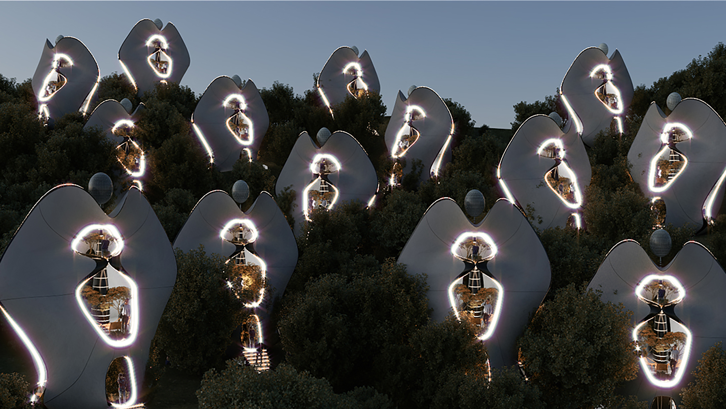 Projetado pela MASK Architects, as estruturas utilizam energias limpas para oferecer mais iluminação e um design surpreendente para os visitantes