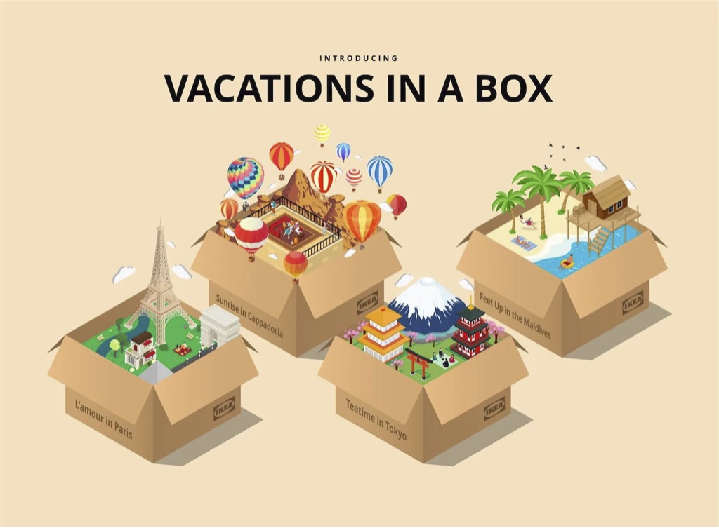 O que significa staycation? É a junção das palavras em inglês stay (ficar) e vacation (férias). É uma tendência que afeta diversos segmentos de consumo, como turismo, moda, decoração. Significa desde tirar férias locais ou em lugares bem próximos ou até mesmo de se transportar sensorialmente e emocionalmente para outros lugares através de objetos, estampas, aromas, sabores, roupas. A Ikea, marca global de origem sueca de móveis e decoração de baixo custo, fez uma ação mirando nesta tendência do staycation sensorial. Eles criaram uma série de caixas temáticas de destinos paradisíacos, e em cada box vinha uma série de produtos, como velas, mantas, cerâmicas, que remetiam àquele lugar. E se cercar de elementos que te transportam sensorialmente é uma maneira de viajar também.
