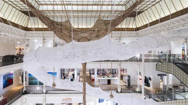 Para sua 2ª exposição de arte este mês, o Le Bon Marché convidou o artista carioca Ernesto Neto, que trabalhou com maestria, criando obras monumentais em crochê na Verrière central, atravessando as escadas rolantes, no segundo andar e nas vitrines das ruas de Sèvres, du Bac e de Babylone. A exigência foi trabalhar com a cor branca, em referência ao “Mês do branco”, iniciado por Aristide e Marguerite Boucicaut, fundadores do Le Bon Marché Rive Gauche no século XIX. As obras do “Le La Serpent” foram criadas no ateliê do artista no Rio, uma interpretação do mito fundador da humanidade na cultura ocidental, revisitando as figuras de Eva, Adão e a serpente.