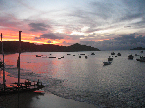 A essa hora o vermelho já tinge as águas da Praia do Canto.