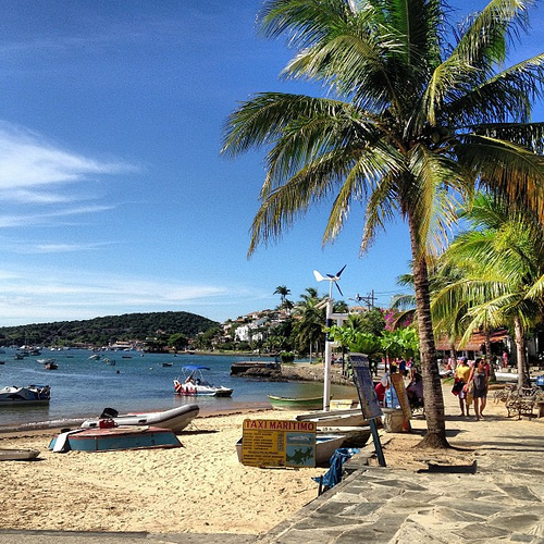 Ao longo do dia, os transatlânticos vão chegando e partindo. Eles despejam milhares de passageiros nas ruas de Búzios.