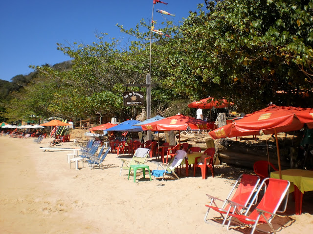 Restaurantes, pousadas e quiosques oferecem cadeiras aos banhistas que se disponham a gastar seus tostões no local.