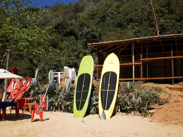 Nem é preciso levar equipamento, pranchas e caiaques de vários tipos para alugar não faltam ao longo de toda a praia.