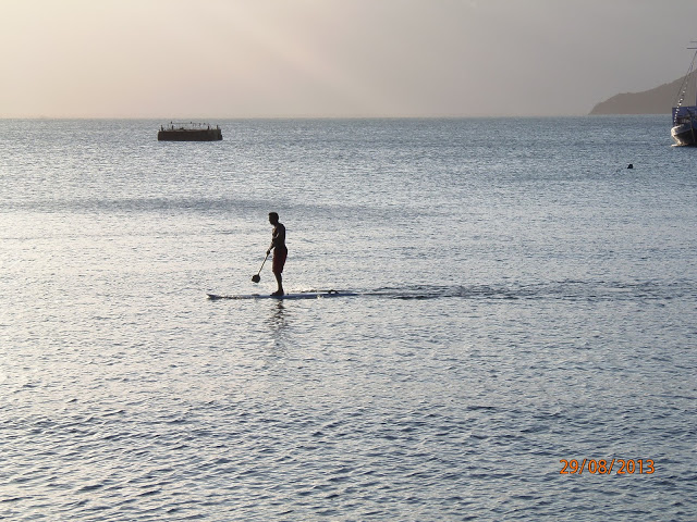 O praticantes do stand up paddle também se aproveitam do mar flat para dar suas remadas.