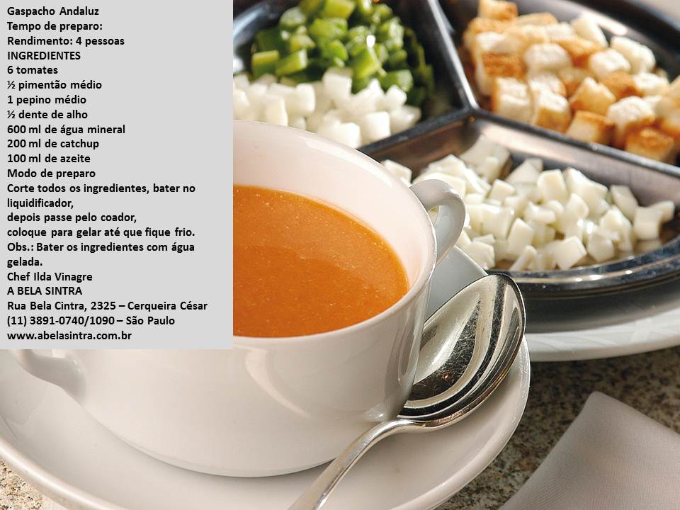 6 – Gazpacho ou Salmorejo. Estas sopas frias típicas espanholas, com um Fino geladinho são uma deliciosa e refrescante entrada para um dia quente.