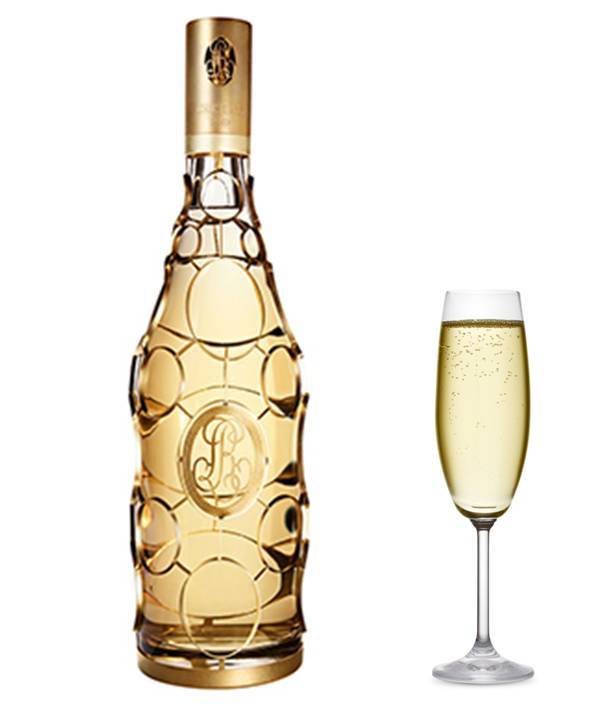 Inspirado em joalherias, a garrafa por si só é impressionante, produzida de forma artesanal por dois ourives mestres. Eles moldaram o metal precioso numa forte proteção sob toda lateral da garrafa, que leva o símbolo do produtor também em ouro. Uma jóia rara, o líquido e sua embalagem.