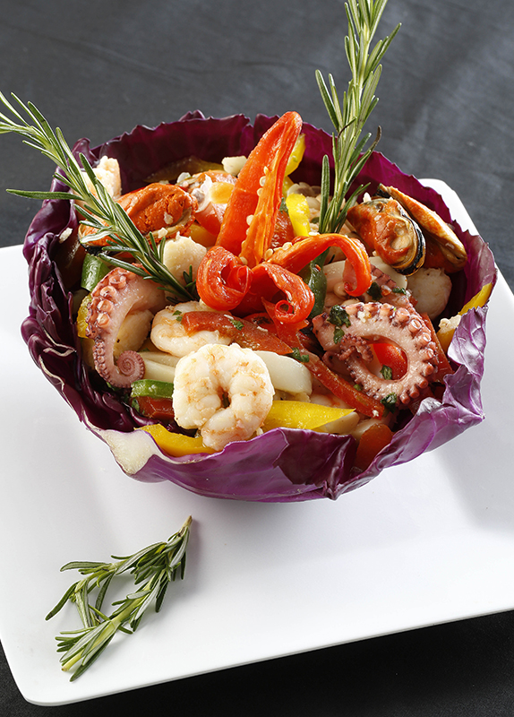 Lascas de bacalhau banhadas no azeite extra virgem, azeitonas pretas e cebolas, salpicados em alho torrados e salsinhas. Servidos com torradas especiais.