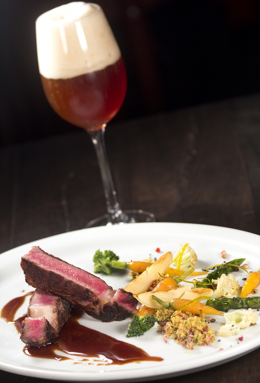 Costela de vitelo com legumes à provençal + Westmalle Dubbel (Bélgica). Um trapista, de cor marrom avermelhada, refermentada na garrafa. Sabor complexo, com toques de banana e um final com leve amargor.