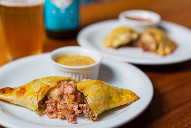 Com muito queijo, o tradicional pernil de Natal vira recheio abundante do pastel (R$ 10,00 a unidade). Vai bem com o chope artesanal da casa, não filtrado, o Riba Premium lager dry hop (R$ 13,00, 300 mililitros).