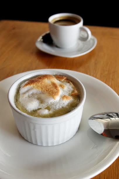 Em uma vasilha, arrume da seguinte forma: uma camada de doce de banana, uma camada de creme e o suspiro por cima. Coloque no forno para gratinar.