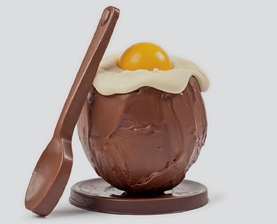 Entre as criações da casa para a Páscoa, destaca-se o original ovo quente recheado de brigadeiro mole, sob “ovo” de chocolate branco (R$ 65,00, 220 gramas). Uma colher de chocolate completa o pedido.