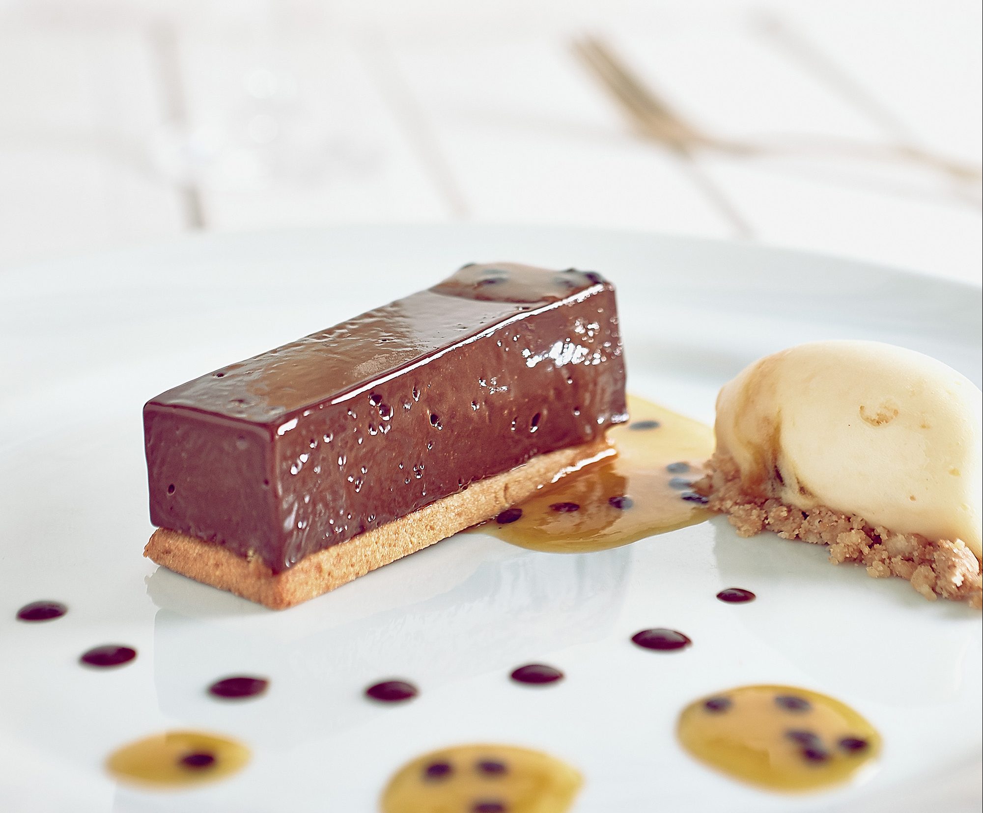 Fondant de chocolate com calda de maracujá (R$ 20,00).