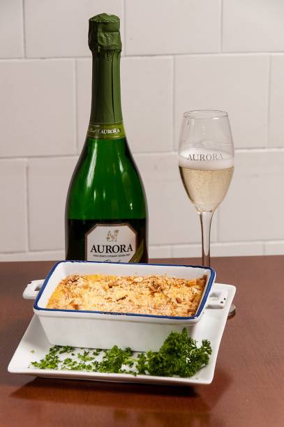 – Bacalhau Presidencial (desfiado de bacalhau ao creme de queijo e filete de cenoura em azeite de ervas) + taça do espumante Aurora Brut (R$ 33,00).