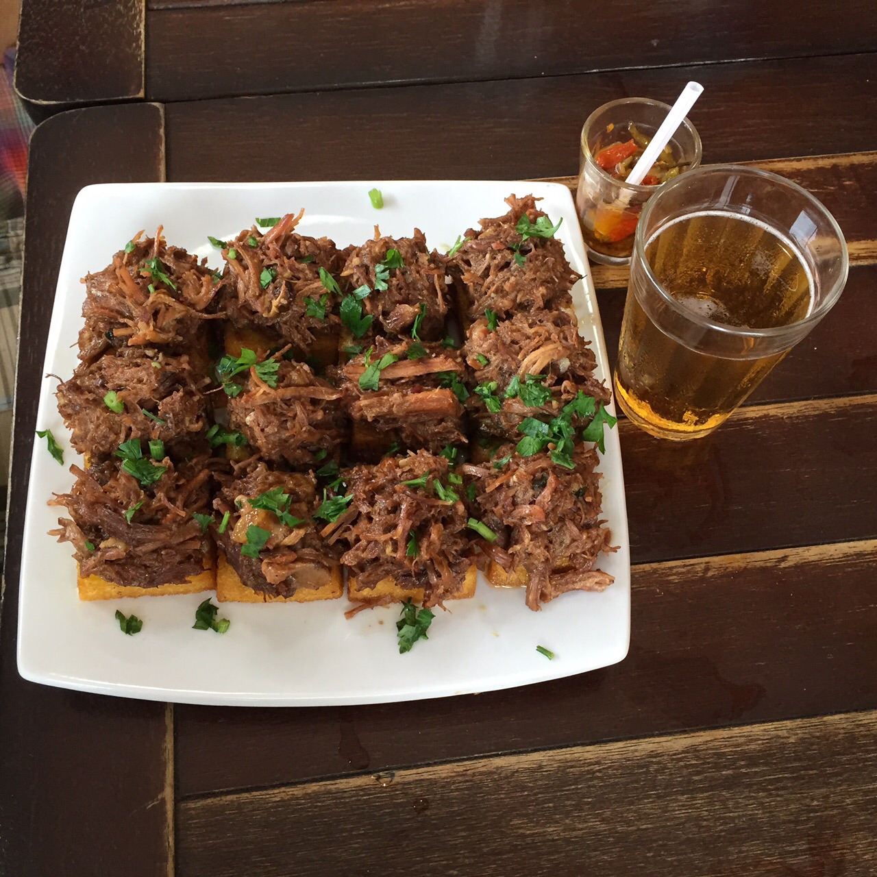 Novidade no cardápio, a rabada aparece coroando fatias crocantes de pão em uma versão muito brasileira da bruschetta (R$ 24,00, oito unidades). A propósito: no sábado, a casa serve um saboroso arroz de rabada como prato principal.