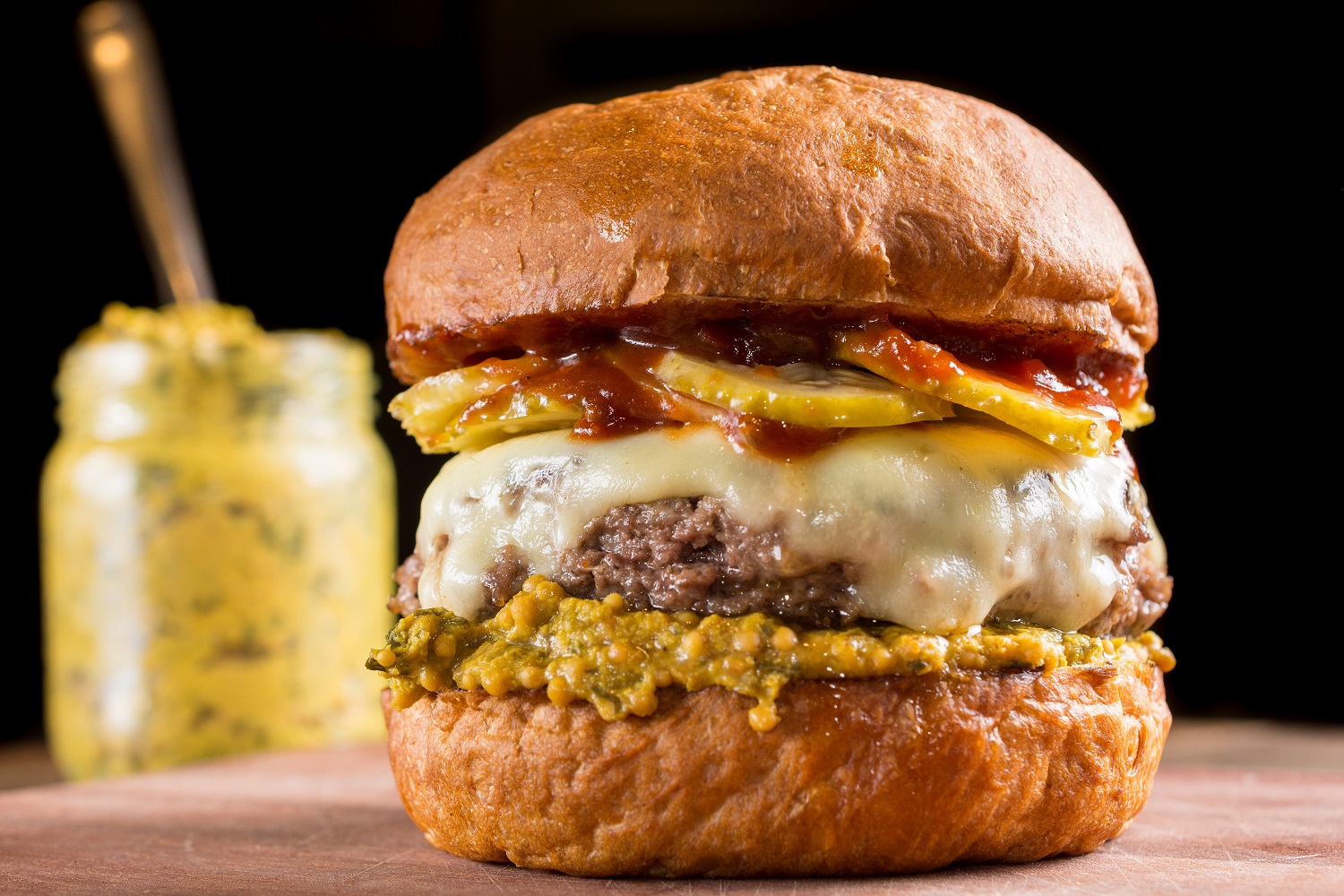 . Jabá Burger: pão de abóbora com blend de carne e bacon, queijo da Serra da Canastra, cebola defumada, molho bearnaise com manteiga de garrafa, páprica picante e crispy de carne seca (R$ 28).