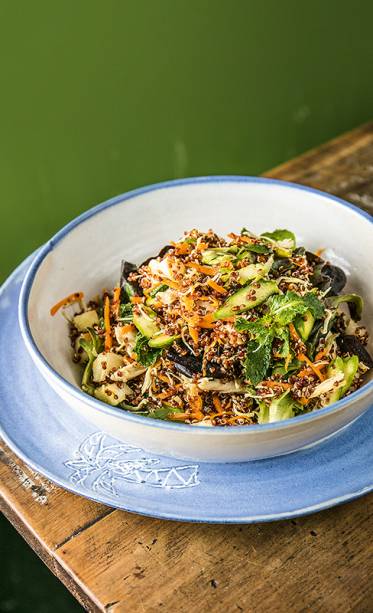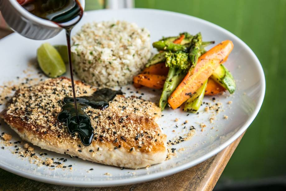 Chef e sócia do Market Ipanema — ponto de culinária saudável pronta para o consumo, atualmente no Centro —, Carolina Figueiredo criou um cardápio fit para o bistrô Santa Satisfação. Em cartaz desde o último dia 22, nas duas unidades, a seleção inclui entradas, pratos principais e saladas, a exemplo da receita que reúne quinoa com frango ao curry, aspargos, abóbora ralada, abacaxi, folhas e ervas frescas (R$ 38,50, na foto). Uma dica da ala mais consistente leva à mesa tilápia grelhada coberta por farofa de gergelim, acompanhada de “risoto” de couve-flor e legumes assados (R$ 48,50).
