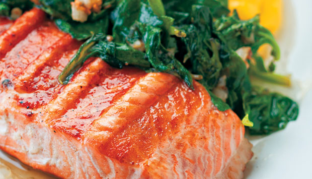 Outra dica é o salmão grelhado com purê de batata-baroa e espinafre salteado (R$ 32,50).
