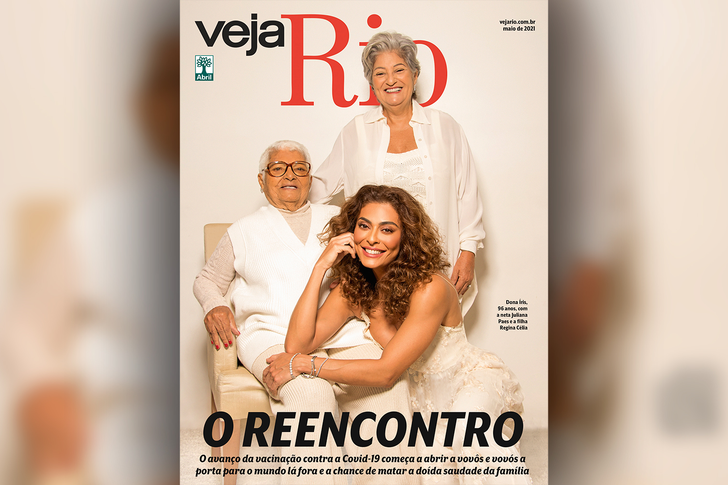 “O único jeito de ver minha avó sem risco era por vídeo. Contei nos dedos o prazo da segunda dose para poder estar pertinho dela de novo”, relata a atriz Juliana Paes, 42 anos, sobre o doce reencontro com dona Íris Couto, 96, que sofre de Alzheimer e vive em Niterói, aos cuidados de Regina Célia, de 66, mãe da artista, também imunizada. “Ela nem é chegada num chamego, mas a saudade era tanta que a primeira coisa que minha avó disse quando me viu foi: ‘Te amo’. Meu coração derreteu”, desabafa Juliana.