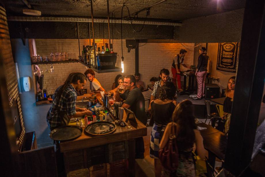 Empreitada da chef Ju Reis, o simpático bar no Leme, com balcão de caixotes de madeira, cozinha aparente e mesas que avançam do pequeno salão para a calçada, prima por ingredientes artesanais. Para beliscar, há dicas como a bruschetta de burrata, tomate confit, tapenade e pesto de manjericão (R$ 14,00) e os croquetes de pernil de porco com molho de mostarda de Dijon (R$ 24,00, seis unidades). Da seção de drinques, o ruby gin tonic (R$ 26,00) é feito com infusão fria de flores e frutas vermelhas, água tônica e alecrim, além de gim. É servido em mais dois tamanhos, o chupito (R$ 12,00) e a jarra (R$ 63,00). O subsolo tem ares de inferninho, luz baixa e palco, com couvert artístico (R$ 12,00) opcional.