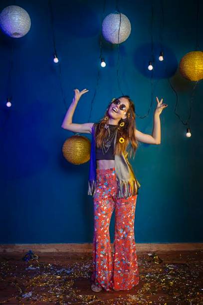 A grife homenageia os carnavais de clube de antigamente com fantasias que fazem um passeio pelas décadas de 20 a 80, uma verdadeira viagem no tempo da folia. Tem melindrosa com vestido de franjas, coquete dos anos 50, hippies de calça boca de sino e colete de franjas dos loucos anos 70 e as maníacas por ginástica dos anos 80, com direito a polainas, munhequeiras e faixa no cabelo. Cada uma custa R$ 239.