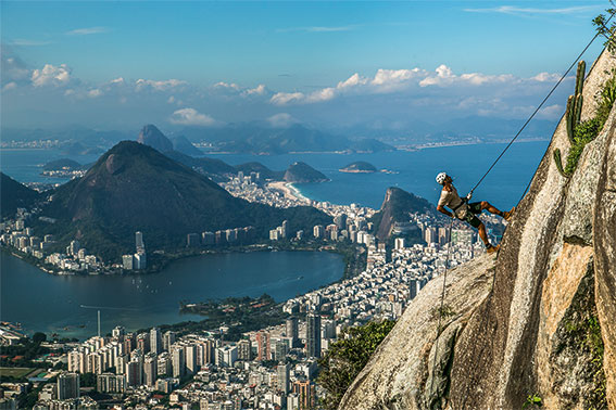 Cercado de montanhas, o Rio é um dos epicentros da prática de rapel no Brasil. Criada em 1879 na França por um escalador, ao descer um paredão de pedra pendurado numa corda, a modalidade não exige experiência. “É um esporte divertido e democrático. Não requer preparo físico de atleta e pode ser feito até por crianças”, garante o instrutor Moisés Miranda, dono da agência Paraíso Radical (☎ 96419-3810). Entre as vias mais procuradas está a do Morro Dois Irmãos, onde o praticante desce 16 metros na pedra com a paisagem das praias, da Lagoa e do Cristo. Antes, porém, é preciso encarar a trilha moderada, com cerca de uma hora (sem correria).