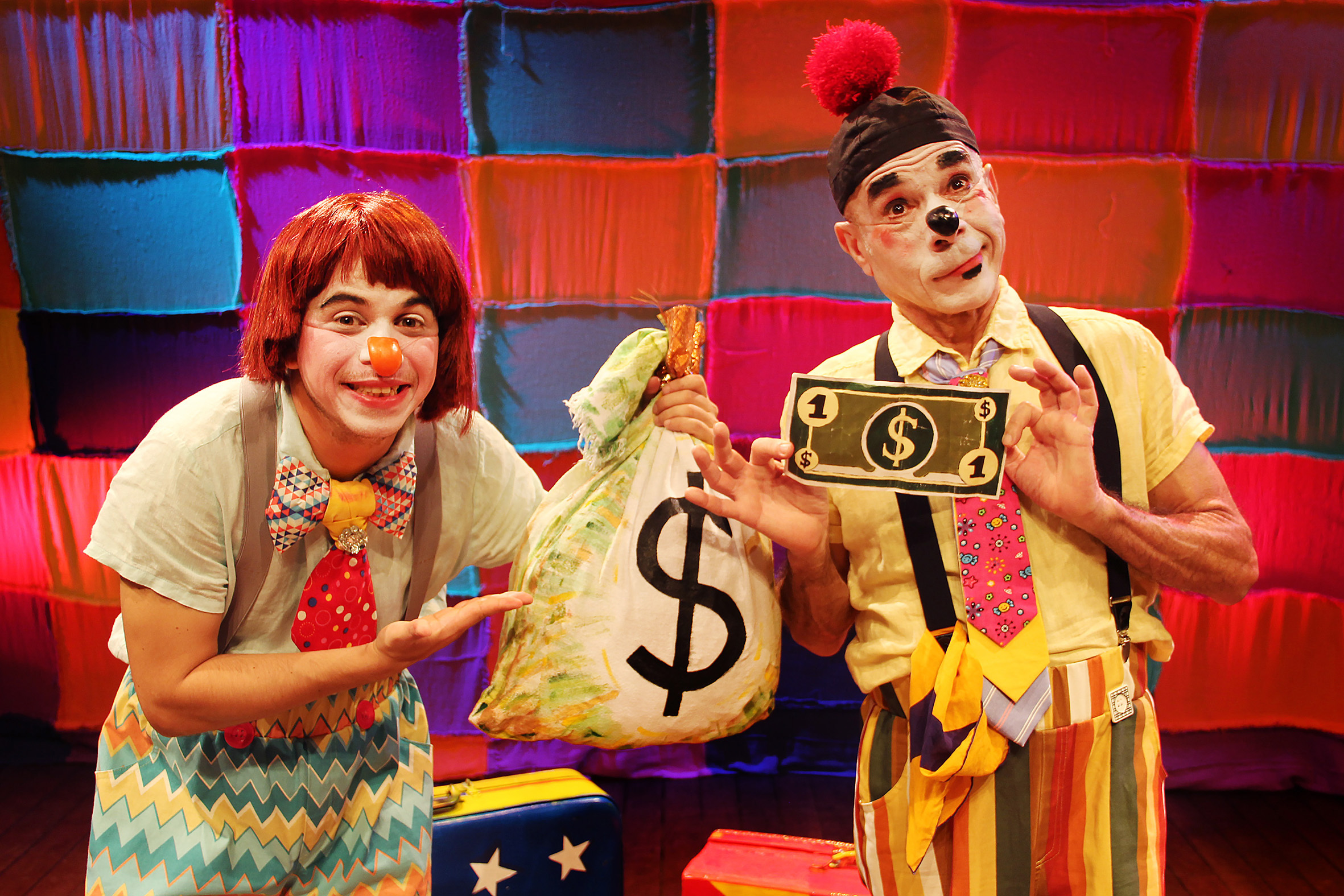 O espetáculo da dupla de palhaços interpretada por Ricardo Blat e Nelson Yabeta ganha o palco do Teatro Ziembinski